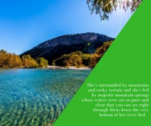 Our story begins in a place called “Hill Country” in a state known as Texas, where a beautiful river runs through a very old and ancient forest with giant Cypress trees that have been reported to be over a 1000 years old. She’s surrounded by mountains and rocky terrain and she’s fed by majestic mountain springs whose waters were are so pure and clear that you can see right through them down the very bottom of her river bed. Every fish and every plant that called her home have no trouble seeing the sun during the day or the moon at night. Her waters shimmer and sparkle brightly in the sun in a way that most rivers can’t even imagine doing and she was so cool and refreshing that she was christened with the name ‘Frio’ the Spanish word for ‘cold’.