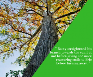 Frio thought about what Rooty said, and felt a little guilty about his leaves. She hoped he would have everything regrown before all the guests arrived. She made a mental note to check back on him every day. He was one of the wisest and kindest trees she knew and if he said there was nothing to worry about, well, he must be right.
